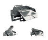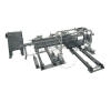 Weird looking thing, isn't it? This system, while unusual in appearnace, is a very high speed sheet rotator. It is part of a system that makes refrigerator evaporators from roll-bonded aluminum sheets. It is designed to be mostly mechanical in nature, as it is located now in Siberia, where high technology support is not readily available. This is actually a small part of a much larger line we designed and built which includes a large number of material handling stations as well as three complete cut-to-length lines, the entry conveyors of which are seen indistinctly in the uuper right corner of this photo.