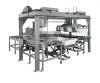 Our customer, one of the largest manufacturers of plastic foam, asked us to automate the stacking of banded bundles of foam sheet and separating sheets into a larger package suitable for shipping. We incorporated two independent loader heads in order to handle both bundles and separating sheets simultaneously, speeding the process significantly over previous methods. The bundle loader is designed to accept a full range of sheet sizes automatically. The separating sheet loader uses a vacuum pickup head to accomodate an equal size range of separating sheets.