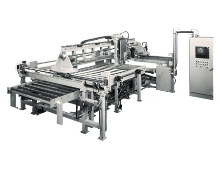A major office furniture manufacturer commissioned this system to produce a cured edge integral to a work surface. It is capable of X, Y, and theta axis coordinated motion and two part urethane mixing and flow rate control. The bed can handle up to 5 foot by 8 foot worksurfaces. An Allen-Bradley brand Computer Numerical Control supervises all functions of the system and interfaces with a stand alone urethane component chemical feed system.